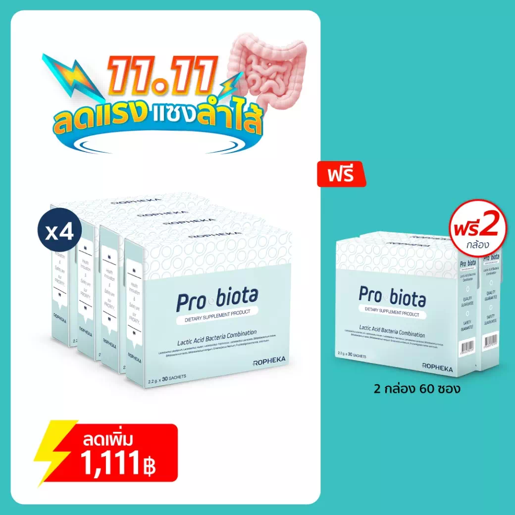 - โพรไบโอต้า มีจุลินทรีย์ที่ดีสูงถึง 22,000,000,000 CFU/ซอง